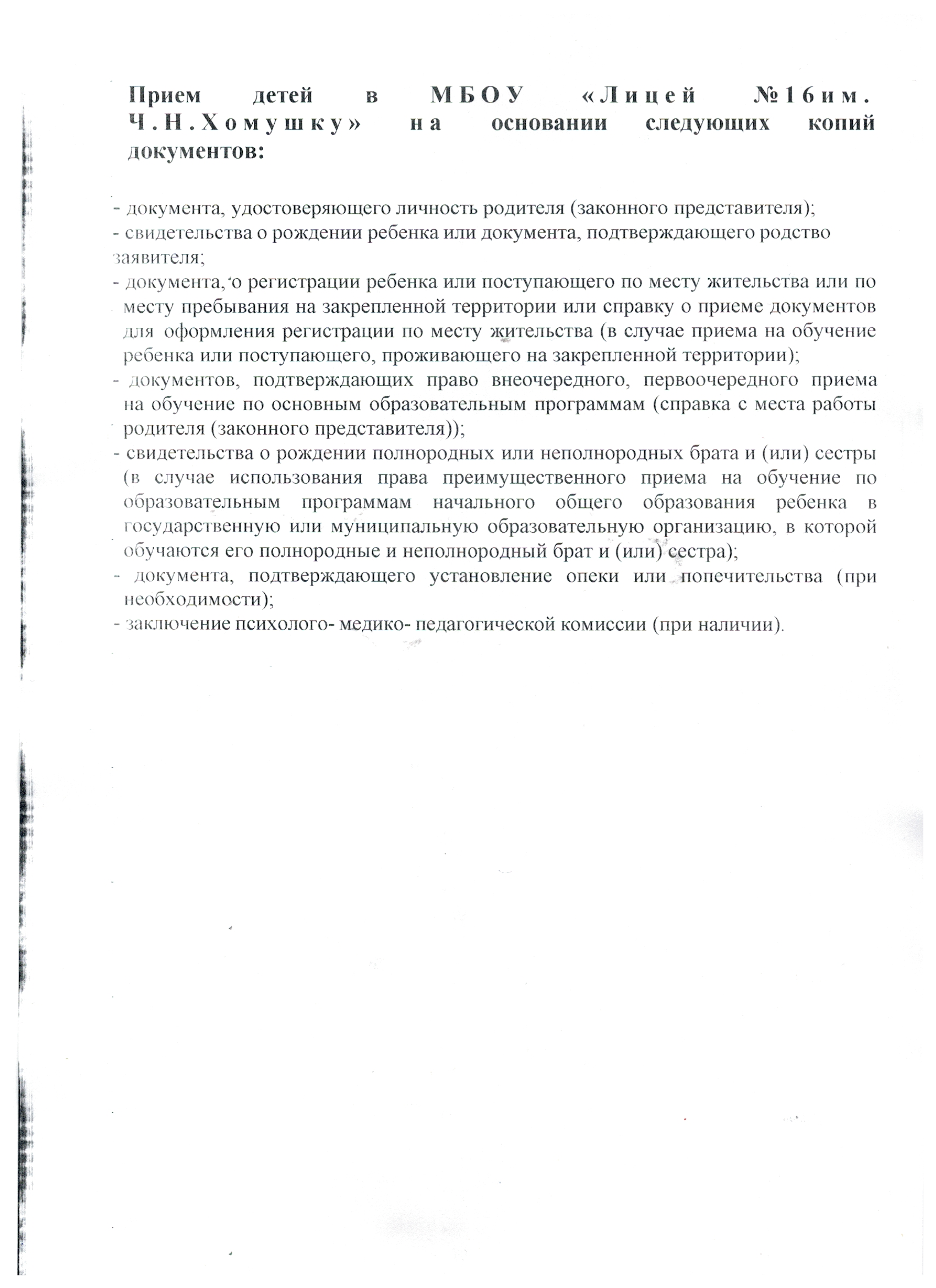 К заявлению родители (законные представители) должны приложить: