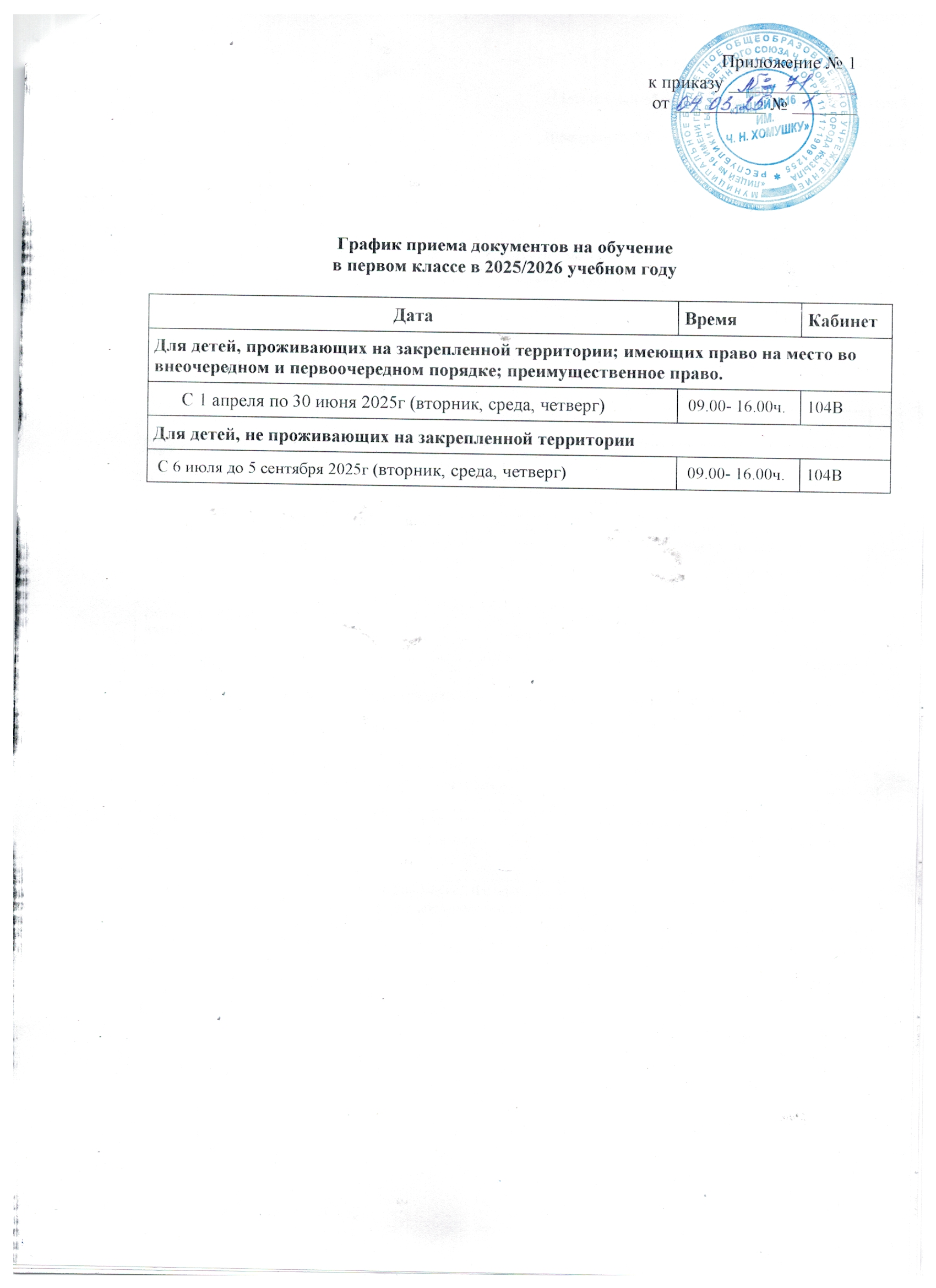 Приём в 1 класс 2025-2026 учебного года